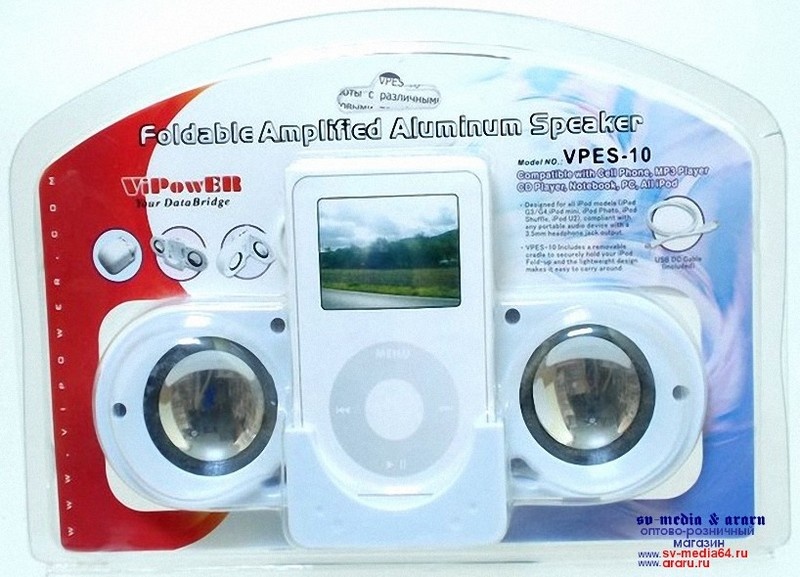 ViPowER VPES-10-9-E Акуст.система 2.0 2x2Вт, пластик, белые, портат, складные, iPod-дизайн