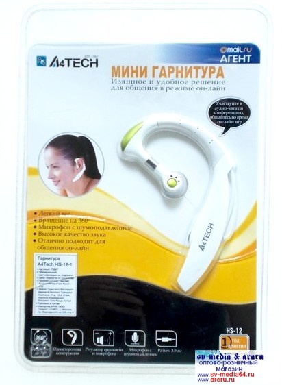 Гарнитура A4TECH HS-12-1 односторонняя,моно, White