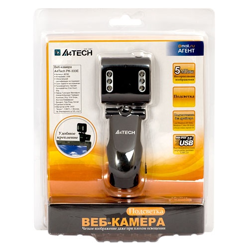 A4Tech PK-333E – миниатюрная веб-камера с подсветкой. Больше не нужно дополнительного освещения или верхнего света, чтобы картинка была хорошей.