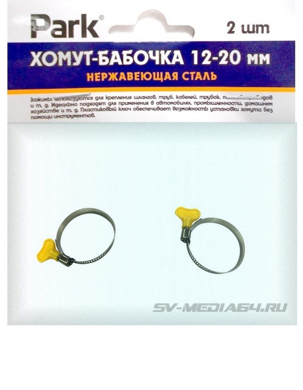 Хомут-бабочка червячный P*2шт 12-20 мм нержав.