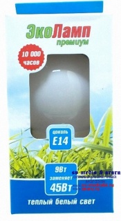 Эколамп Premium Шарик G-9Вт Е14 2700/арт070