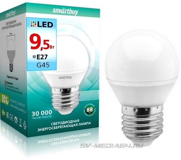 SMART BUY LED Шарик G45-9,5Вт Е27 4000К/арт2680