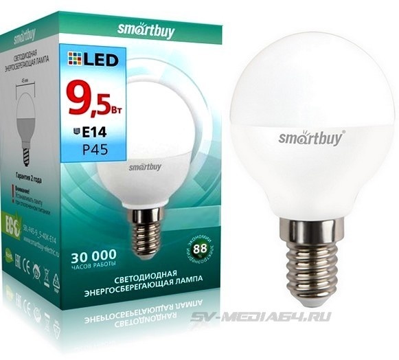 SMART BUY LED Шарик P45-9,5Вт Е14 4000К/арт2659
